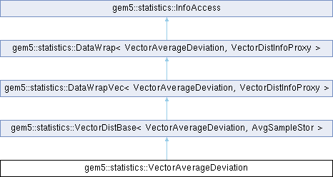 Public Member Functions inherited from gem5::statistics::VectorDistBase< VectorAverageDeviation, AvgSampleStor > | |