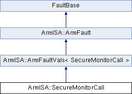 Public Member Functions inherited from ArmISA::ArmFaultVals< SecureMonitorCall > | |