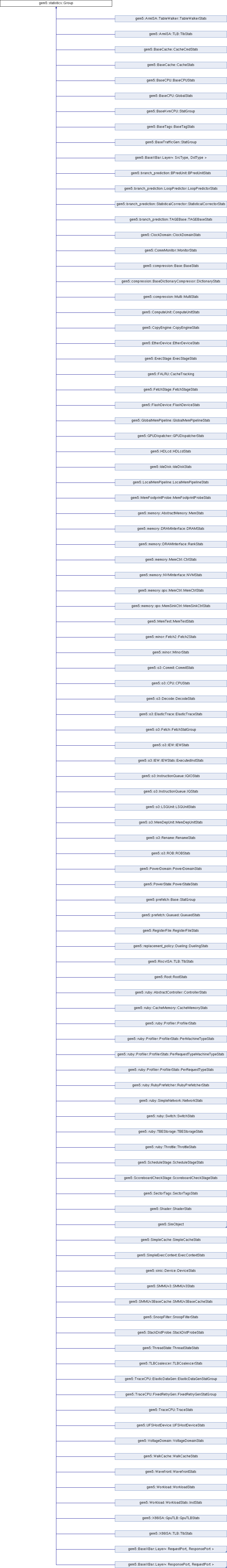 A stat group is a hierarchical structure that contain statistics and other groups. Groups are used by the stat system to reflect gem5's SimObject hierarchy and to expose internal hierarchy within an object. They can also be used to conveniently group stats into their own class/struct and then be merged into the parent group (typically a SimObject).