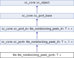 Public Member Functions inherited from sc_core::sc_port< tlm_nonblocking_peek_if< T >, 1 > | |