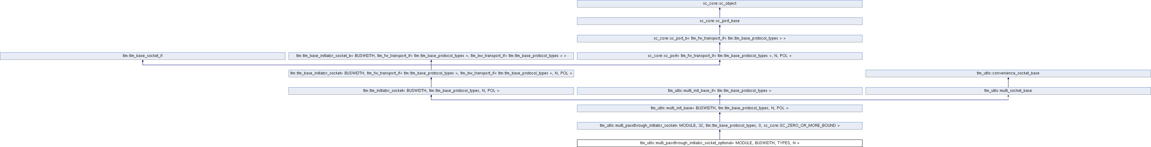 Inheritance diagram for tlm_utils::multi_passthrough_initiator_socket_optional< MODULE, BUSWIDTH, TYPES, N >: