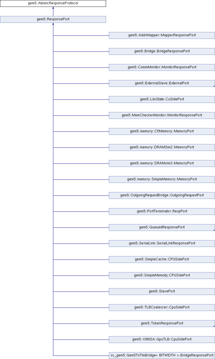 Implemented in gem5::ResponsePort, gem5::memory::MemCtrl::MemoryPort, gem5::CoherentXBar::CoherentXBarResponsePort, gem5::NoncoherentXBar::NoncoherentXBarResponsePort, gem5::memory::CfiMemory::MemoryPort, gem5::memory::SimpleMemory::MemoryPort, and sc_gem5::Gem5ToTlmBridge< BITWIDTH >::BridgeResponsePort.