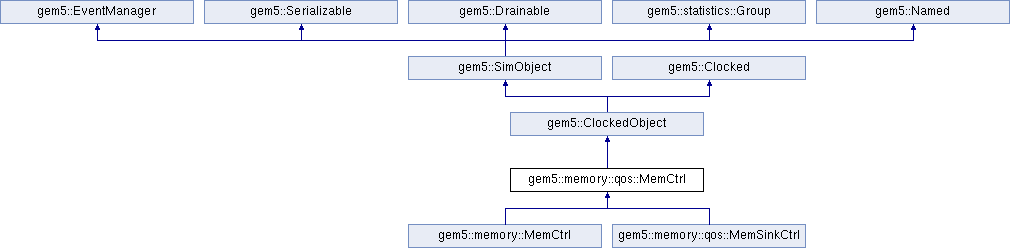 The qos::MemCtrl is a base class for Memory objects which support QoS - it provides access to a set of QoS scheduling policies. More...