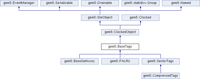 Implemented in gem5::FALRU, gem5::SectorTags, gem5::BaseSetAssoc, and gem5::CompressedTags.
