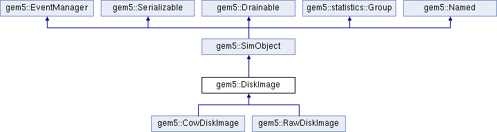 gem5::SimObject gem5::EventManager gem5::Serializable gem5::Drainable gem5::statistics::Group gem5::Named gem5::CowDiskImage gem5::RawDiskImage