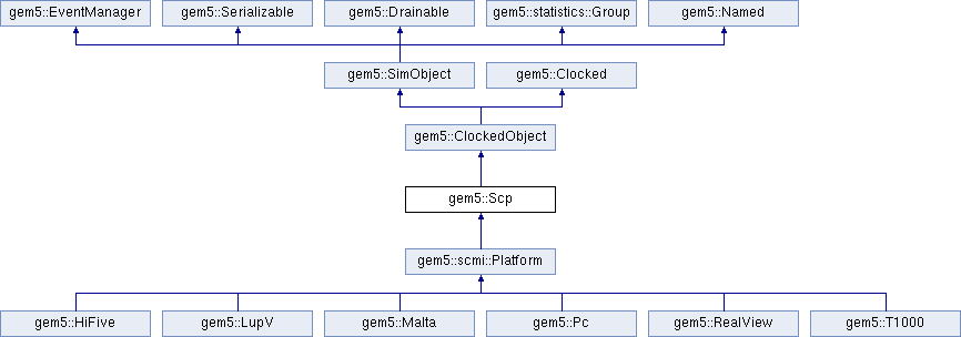 gem5::ClockedObject gem5::SimObject gem5::Clocked gem5::EventManager gem5::Serializable gem5::Drainable gem5::statistics::Group gem5::Named gem5::scmi::Platform gem5::HiFive gem5::LupV gem5::Malta gem5::Pc gem5::RealView gem5::T1000