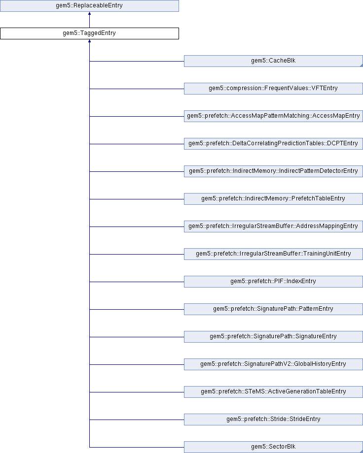 Reimplemented in gem5::TempCacheBlk, gem5::SuperBlk, gem5::CacheBlk, gem5::prefetch::IndirectMemory::IndirectPatternDetectorEntry, gem5::CompressionBlk, gem5::compression::FrequentValues::VFTEntry, gem5::prefetch::Stride::StrideEntry, gem5::SectorSubBlk, gem5::prefetch::SignaturePath::PatternEntry, gem5::prefetch::IndirectMemory::PrefetchTableEntry, gem5::prefetch::AccessMapPatternMatching::AccessMapEntry, gem5::prefetch::STeMS::ActiveGenerationTableEntry, gem5::prefetch::IrregularStreamBuffer::AddressMappingEntry, and gem5::prefetch::DeltaCorrelatingPredictionTables::DCPTEntry.