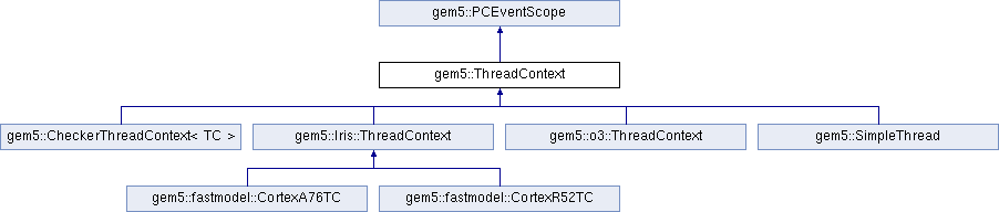 Implemented in gem5::CheckerThreadContext< TC >, gem5::SimpleThread, gem5::o3::ThreadContext, gem5::Iris::ThreadContext, and gem5::fastmodel::CortexR52TC.