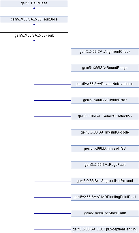 Inheritance diagram for gem5::X86ISA::X86Fault: