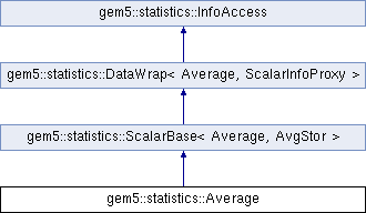- Public Member Functions inherited from gem5::statistics::DataWrap< Average, ScalarInfoProxy >