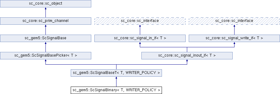 Inheritance diagram for sc_gem5::ScSignalBinary< T, WRITER_POLICY >: