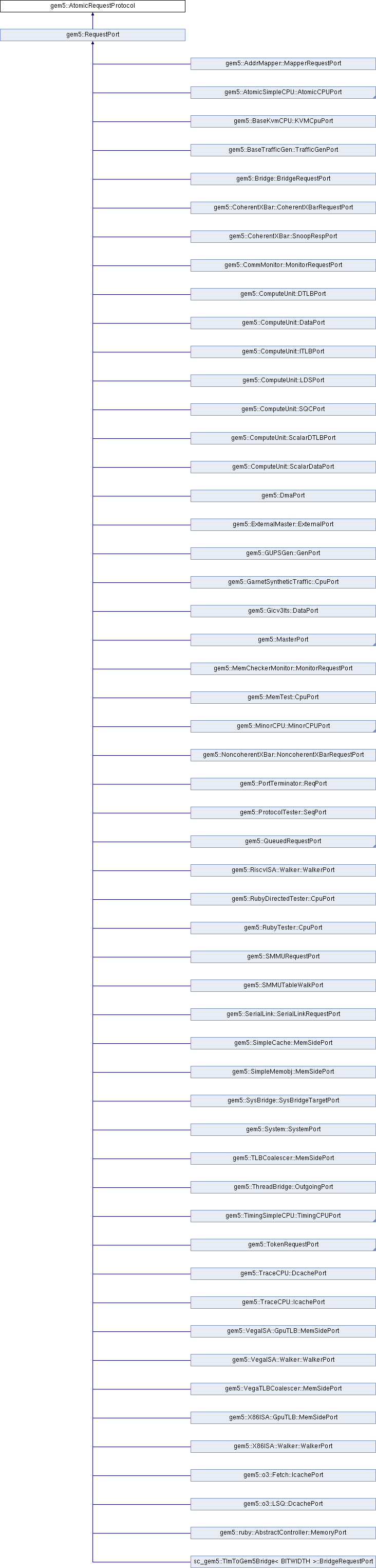 Implemented in gem5::SysBridge::SysBridgeTargetPort, gem5::RequestPort, gem5::MemDelay::RequestPort, gem5::CoherentXBar::CoherentXBarRequestPort, gem5::AddrMapper::MapperRequestPort, gem5::MemCheckerMonitor::MonitorRequestPort, gem5::CommMonitor::MonitorRequestPort, gem5::BaseCache::MemSidePort, gem5::BaseTrafficGen::TrafficGenPort, gem5::MemTest::CpuPort, and gem5::AtomicSimpleCPU::AtomicCPUDPort.