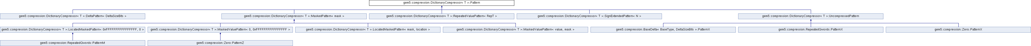 Implemented in gem5::compression::DictionaryCompressor< T >::SignExtendedPattern< N >, gem5::compression::DictionaryCompressor< T >::DeltaPattern< DeltaSizeBits >, gem5::compression::DictionaryCompressor< T >::RepeatedValuePattern< RepT >, gem5::compression::DictionaryCompressor< T >::MaskedValuePattern< value, mask >, gem5::compression::DictionaryCompressor< T >::MaskedValuePattern< 0, 0xFFFFFFFFFFFFFFFF >, gem5::compression::DictionaryCompressor< T >::MaskedPattern< mask >, and gem5::compression::DictionaryCompressor< T >::UncompressedPattern.