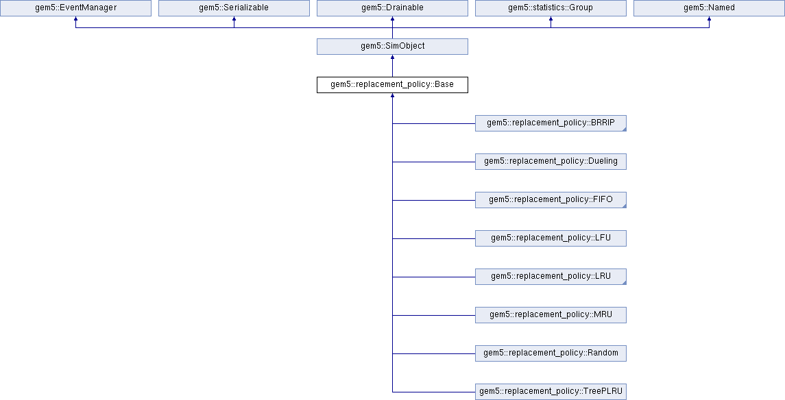 Implemented in gem5::replacement_policy::TreePLRU, gem5::replacement_policy::SHiP, gem5::replacement_policy::SecondChance, gem5::replacement_policy::Random, gem5::replacement_policy::MRU, gem5::replacement_policy::LRU, gem5::replacement_policy::LFU, gem5::replacement_policy::FIFO, gem5::replacement_policy::Dueling, and gem5::replacement_policy::BRRIP.