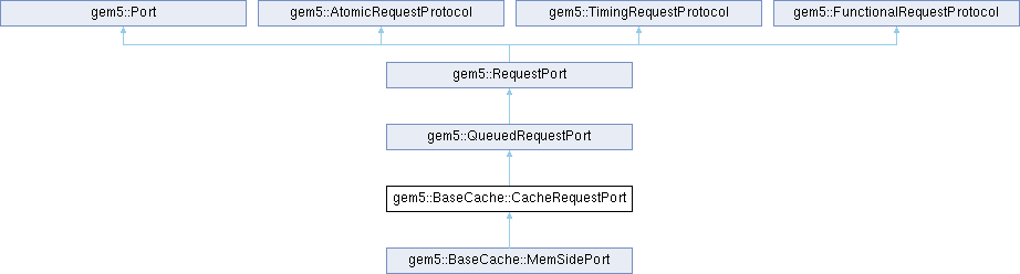 A cache request port is used for the memory-side port of the cache, and in addition to the basic timing port that only sends response packets through a transmit list, it also offers the ability to schedule and send request packets (requests & writebacks).