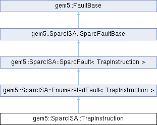 - Public Member Functions inherited from gem5::SparcISA::EnumeratedFault< TrapInstruction >