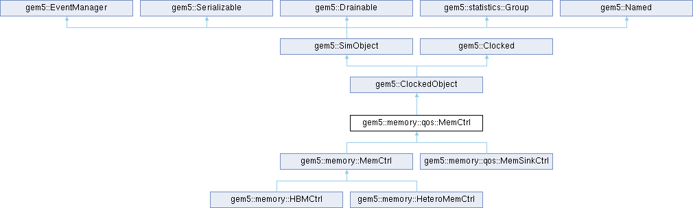 The qos::MemCtrl is a base class for Memory objects which support QoS - it provides access to a set of QoS scheduling policies. More...